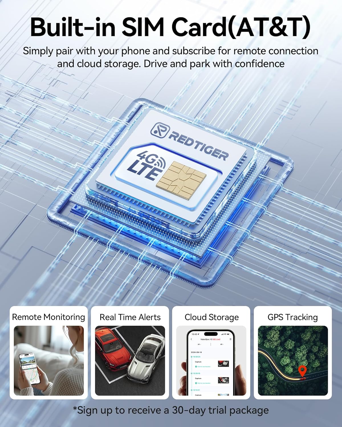| Other Special Features of the Product | 4G LTE(Subscription required), Remote Monitor, Live Stream, Cloud Storage,Remote Control, Real Time Alert,Built-In GPS,Night Vision,Parking Monitor, Built-In Display,Built-In WiFi, App Control,Compact Design, Internal Memory,G-Sensor,Loop Recording,32GB Memory Card,Built-In Supercapacitor |